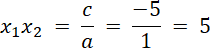 ma dwa różne rozwiązania, których iloczyn jest równy - 5.