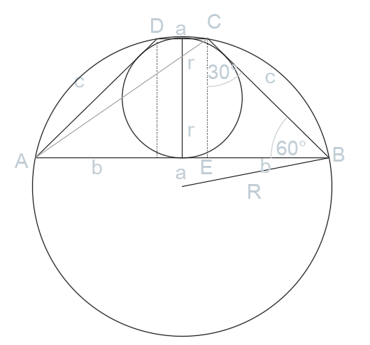 Trójkąt CEB ma miary kątów 30°, 60°, 90°, więc: