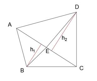 Dany jest czworokąt wypukły ABCD. Udowodnij, że czworokąty ABED i BCDE mają takie same pola, jeśli E jest środkiem przekątnej AC.