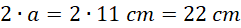 Długości boków wynoszą 22 cm i 11 cm.