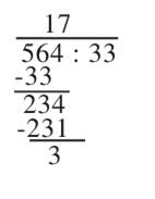 sprawdzenie: 17 ꞏ 33 + 3 = 561 + 3 = 564.