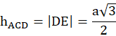 Kąt między ścianami czworościanu foremnego to kąt dwuścienny – zaznaczono kolorem czerwonym. Szukany kąt to kąt między wysokościami przyległych ścian. Zatem wysokość ściany bocznej to
