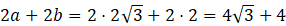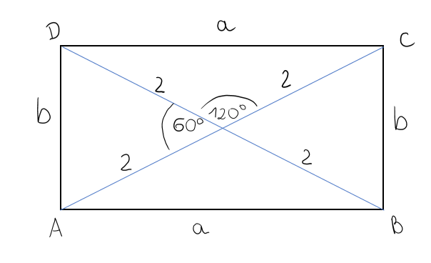 Oblicz długości boków korzystając z twierdzenia cosinusów. Mając obliczone długości boków, zsumuj wszystkie i podaj długość obwodu tego prostokąta.