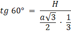 Skorzystaj z twierdzenia Pitagorasa, tangensa kąta i zależności w trójkącie 30°, 60°, 90°, aby wyznaczyć a i H: