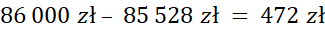 W następnym kroku oblicz różnicę 86 000 zł i 85 528 zł.
