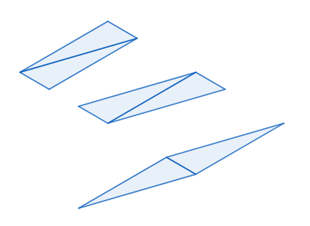 Narysuj trzy różne figury środkowosymetryczne zbudowane z dwóch przystających trójkątów w taki sposób, by każda z figur po odwróceniu względem pewnego punktu o