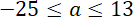 Pierwszą liczbą w tym zbiorze będzie -25, a ostatnią 13. Podstaw: