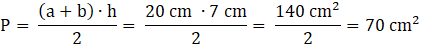 Po policzeniu wszystkich wymiarów trapezu i podstawieniu do wzoru pole trapezu wynosi 70 cm2.