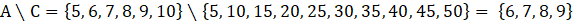 Szukając różnicy zbioru A i zbioru C, musisz odrzucić ze zbioru A wszystkie elementy, które należą do zbioru C. Będą nimi