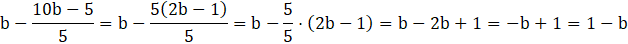 W tym zadaniu musisz wyłączyć liczbę 5 przed nawias w liczniku i skrócić ją z 5 w mianowniku. Następnie musisz zsumować wyrażenia podobne.