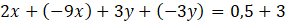 Teraz rozwiążemy układ równań metodą przeciwnych współczynników: