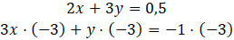 Aby rozwiązać układ równań tą metodą musimy drugie równanie pomnożyć obustronnie przez –3, aby przed zmienną y uzyskać przeciwne współczynniki w obu równaniach.