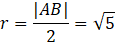 Najpierw oblicz odległość między dwoma punktami, gdyż ta odległość podzielona przez 2 da promień. Następnie użyj wzoru na środek odcinka i otrzymaj środek okręgu.