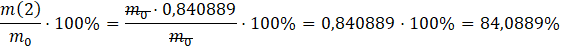 Aby obliczyć jaki procent początkowej masy stanowi ta próbka po 2 dniach wystarczy, że podzielisz masę próbki po 2 dniach, przez masę początkową próbki i przemnożysz przez 100%.