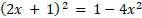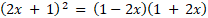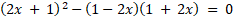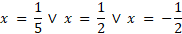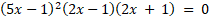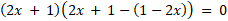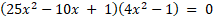 Wyznacz rozwiązania spełniające oba równania (2x + 1)2 = 1 – 4x2 i (25x2 – 10x + 1)(4x2 – 1) = 0.