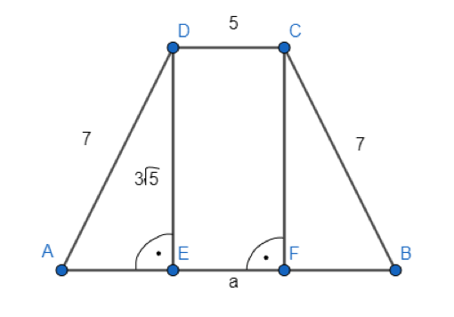Należy obliczyć pole i obwód trapezu równoramiennego, którego jedno ramię ma długość 7, krótsza podstawa wynosi 5, a wysokość ma wartość 3