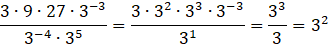 W tym zadaniu musisz doprowadzić wyrażenie do postaci 3a, gdzie a to liczba całkowita. Musisz rozbić wszystkie liczby w liczniku na potęgi trójki, a następnie skorzystać z praw działania na potęgach.