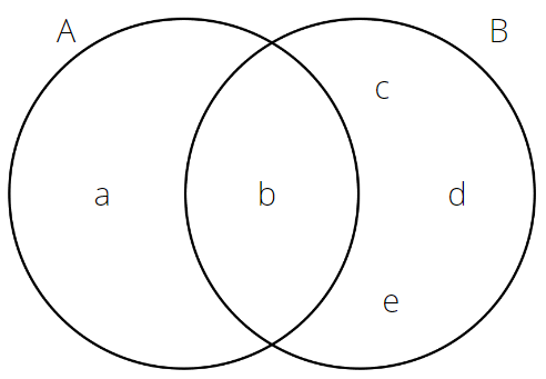 Jeden element musi należeć tylko do zbioru A, trzy elementy tylko do zbioru B, a ostatni element do ich części wspólnej.