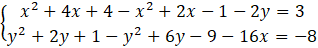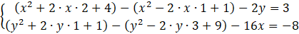 Na początku zadania musisz uprościć równania (musisz skorzystać ze wzorów na kwadrat sumy (a + b)2 = a2 + 2ab + b2 i kwadrat różnicy (a – b)2 = a2 – 2ab + b2)) i przestawić wszystkie niewiadome na lewą stronę, a liczby na prawą. W kolejnym kroku musisz podzielić drugie równanie tak, aby liczby stojące przy wybranej niewiadomej w obu równaniach były sobie przeciwne. Następnie musiszdodać oba równania do siebie stronami. Wybrane niewiadome zredukują się ze sobą. Musisz rozwiązać równanie z jedną niewiadomą. Po wyliczeniu wartości pozostałej niewiadomej musisz podstawić ją do dowolnego równania, a następnie rozwiązać to równanie, aby wyznaczyć wartość wybranej niewiadomej.