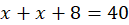 Następnie przyrównaj sumę liczb x i x + 8 do 40 i rozwiąż otrzymane równanie: