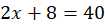 W tym zadaniu zapisz i rozwiąż równanie na podstawie podanej informacji: Suma liczby x i liczby o 8 od niej większej jest równa 40.