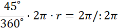 W tym zadaniu określ, jaka jest długość promienia okręgu, w którym kąt o wierzchołku w środku okręgu i o mierze 45° jest oparty na łuku o długości 2π.