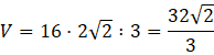 Aby obliczyć objętość ostrosłupa, należy obliczyć jedną trzecią iloczynu pola podstawy oraz wysokości ostrosłupa. Wysokość ostrosłupa jest przyprostokątną trójkąta prostokątnego, którego drugą przyprostokątną jest połowa przekątnej podstawy, a przeciwprostokątną – krawędź boczna. Wartość wysokości należy wyznaczyć, korzystając z twierdzenia Pitagorasa.