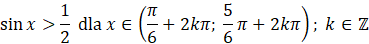 Zauważ, że rozpatrywanych przedziałów jest nieskończenie wiele, a różnica pomiędzy odpowiednimi punktami w kolejnych z nich wynosi 2π, co wynika z okresowości funkcji sinus.
