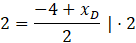 Skorzystaj ze wzoru na obliczanie punktu środkowego odcinka, aby obliczyć współrzędne punktu D: