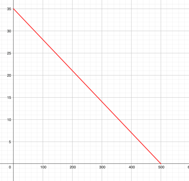 Na wykresie możesz zauważyć, że wszystkie argumenty, dla których ta funkcja przyjmuje wartość to liczby od 0 do 500 i to jest dziedzina tej funkcji. Z tabeli łatwo odczytać wartość maksymalną i minimalną. Z wykresu natomiast odczytasz, że wszystkie wartości pośrednie są przyjmowane, zatem zbiór wartości to przedział <0,35>