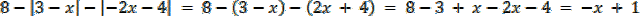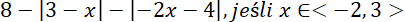 Skoro x należy do przedziału od - 2 do 3, to |3 - x| będzie zawsze dodatnie i przy opuszczaniu nie zmieniasz znaku, natomiast | - 2x - 4| będzie zawsze ujemne i przy opuszczaniu wartości bezwzględnej musisz zmienić znaki na przeciwne: