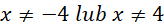 Dziedziną może być każda liczba rzeczywista, ale należy zwrócić uwagę, że, mianownik nie może być równy 0, zatem należy rozwiązać równanie: