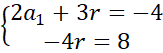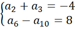 Wyznacz pierwszy wyraz i różnicę tego ciągu, jeśli w ciągu arytmetycznym suma wyrazów drugiego i trzeciego jest równa -4, natomiast różnica wyrazów szóstego i dziesiątego jest równa 8.