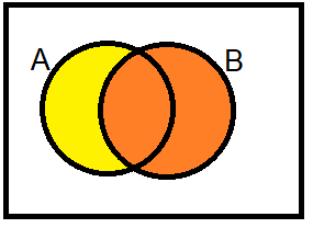Na diagramie zakoloruj (żółty) oraz B (pomarańczowy), a następnie znajdź sumę obu zbiorów (pokolorowane na któryś z kolorów).