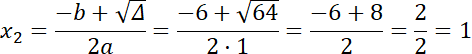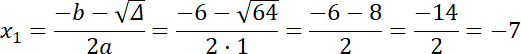 ∆ = b2 – 4ac = 62 – 4 · 1 · (–7) = 64