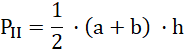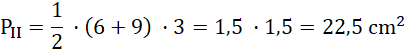 Figura składa się z prostokąta i trapezu. Musisz obliczyć pole każdego z nich. Musisz obliczyć wysokość trapezu, więc odejmij od dłuższej podstawy prostokąta, krótszą. Następnie suma pól trapezu i prostokąta jest powierzchnią całej figury.