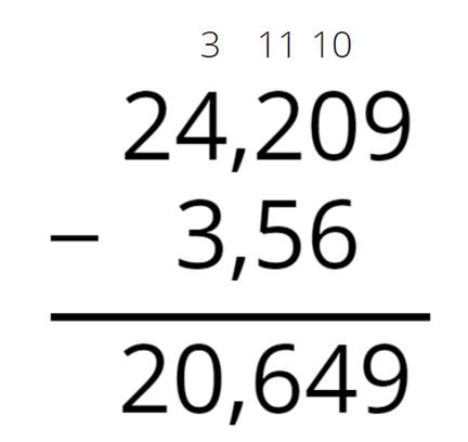 Aby dodać lub odjąć pisemnie, zapisujemy liczby tak, aby przecinek był pod przecinkiem. Uzupełniamy ewentualne braki zerami i wykonujemy działania cyfra po cyfrze, działając od końca do początku.