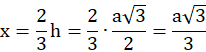 Szukany kąt jest zaznaczony na czerwono. Wysokości w trójkącie przecinają się w stosunku 2:1, dlatego nieznany odcinek x to