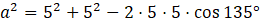 Korzystając z twierdzenia cosinusów, obliczam a: