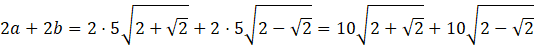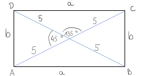Oblicz długości boków korzystając z twierdzenia cosinusów. Mając obliczone długości boków, zsumuj wszystkie i podaj długość obwodu tego prostokąta.