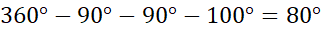 Zauważ, że dwa z pozostałych kątów to kąty proste, jako kąty między symetralnymi boków i danych boków. Oblicz miarę czwartego kąta wiedząc, że suma kątów w czworokącie wynosi