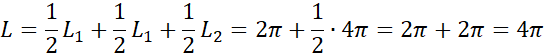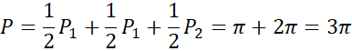 Zauważ, że figura składa się z połówek kół o promieniach 1 i 2. W pierwszej kolejności oblicz pola i obwody pełnych kół o tych promieniach. Skorzystaj ze wzorów