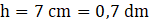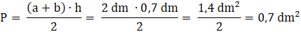 Po policzeniu wszystkich wymiarów trapezu i podstawieniu do wzoru pole trapezu wynosi 0,7 dm2.