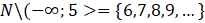 Ze zbioru liczb naturalnych, odrzuć wszystkie liczby naturalne mniejsze od 5. Pamiętaj, że liczba 0 jest naturalna. Pamiętaj, że w przedziale domkniętym koniec przedziału należy do przedziału.