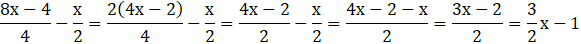 W tym zadaniu musisz wyłączyć liczbę 2 przed nawias w liczniku i skrócić ją z 4 w mianowniku. Następnie musisz sprowadzić ułamki do wspólnego mianownika i skrócić wyrazy podobne.