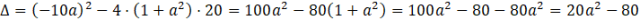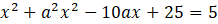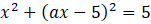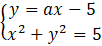 W tym zadaniu trzeba ustalić dla jakich parametrów a, prosta zadana równaniem y = ax – 5 będzie przecinała w dwóch punktach okrąg opisany równaniem x2 + y2 = 5.