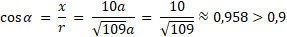 oblicz przybliżoną wartość cosinusa i zauważ, że jest ona większa od 0,9.