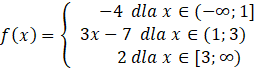 Funkcja ta przyjmuje dwa różne wzory dla argumentów z przedziałów
