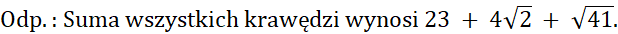 Suma długości wszystkich krawędzi, to dodawanie długości poszczególnych krawędzi, pamiętaj, że ostrosłup ma tyle krawędzi bocznych, ile jest krawędzi w podstawie.