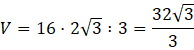 Aby obliczyć objętość ostrosłupa, należy obliczyć jedną trzecią iloczynu pola podstawy oraz wysokości ostrosłupa. Wysokość ostrosłupa jest przyprostokątną trójkąta prostokątnego, którego drugą przyprostokątną jest połowa krawędzi podstawy, a przeciwprostokątną – wysokość ściany bocznej. Wartość wysokości należy wyznaczyć, korzystając z twierdzenia Pitagorasa.